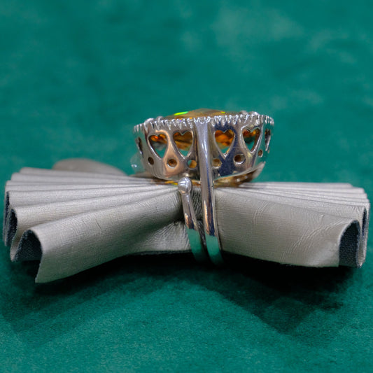 Anello in argento 925, regolabile, con zirconi e pietra dura